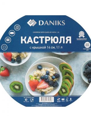 Кастрюля нержавеющая сталь, 1 л, крышка стекло, Daniks, GS-01311-14CA/SD-514, индукция