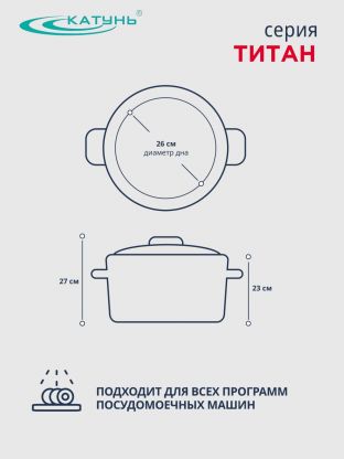 Кастрюля из нержавеющей стали 12 л Катунь Титан (KT-G-00212) — выбор тех, кто ищет вместительную посуду для ежедневного и сезонного использования. Капсульное дно обеспечивает быстрый и равномерный прогрев, что позволяет готовить любые блюда — от супов и каш до компотов и пюре — без риска пригорания. Благодаря прочной стали марки 201 кастрюля устойчива к механическим повреждениям и не боится частого мытья, в том числе в посудомоечной машине.
