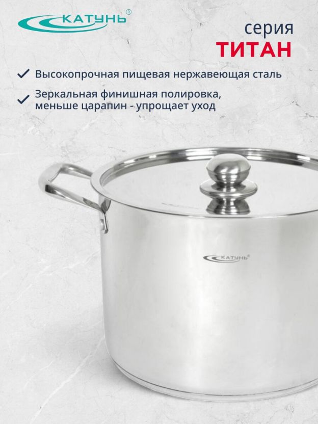 Кастрюля нержавеющая сталь 12 л Катунь Титан — оптимальное решение для больших семей и дачи: вместимость, долговечность, универсальность.