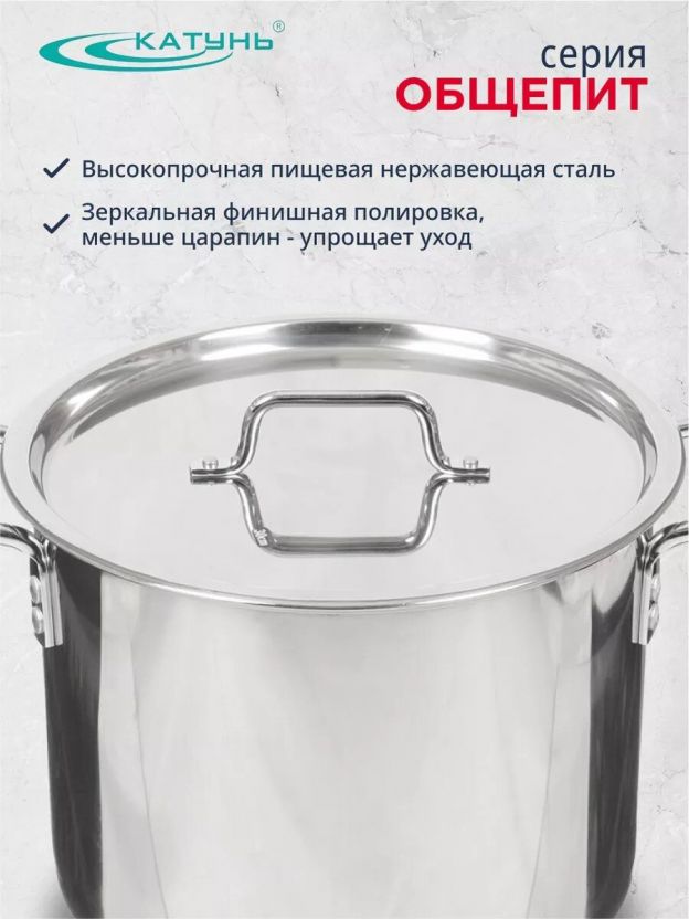 Кастрюля нержавеющая сталь, 15 л, 30х24.5 см, клепаные ручки, Катунь, Общепит, КТ-ОБ-15 В