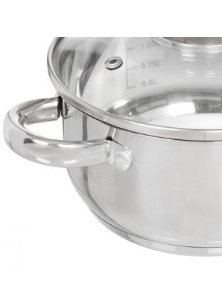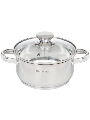 Кастрюля нержавеющая сталь, 2.2 л, крышка стекло, Daniks, Оптима, GS-01201-18CA, индукция