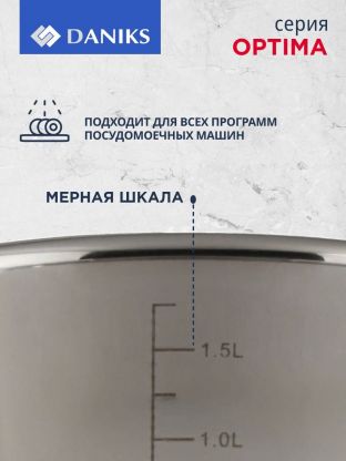 Выберите кастрюлю Daniks Оптима 2.2 л — надёжное качество, гарантия 12 месяцев, доставка по выгодной цене. Закажите сейчас и оцените преимущества профессиональной посуды для повседневного и праздничного стола.