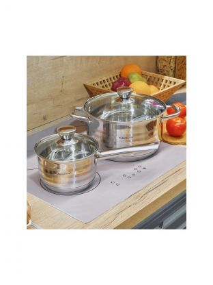 - Капсульное дно 6 мм — равномерный нагрев и экономия энергии на всех типах плит, включая индукционные.