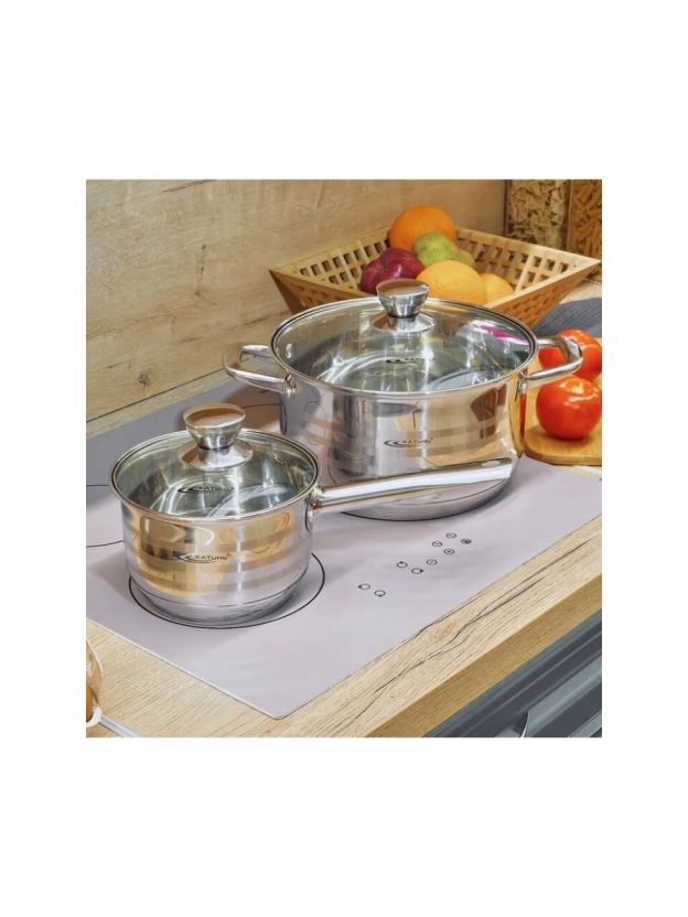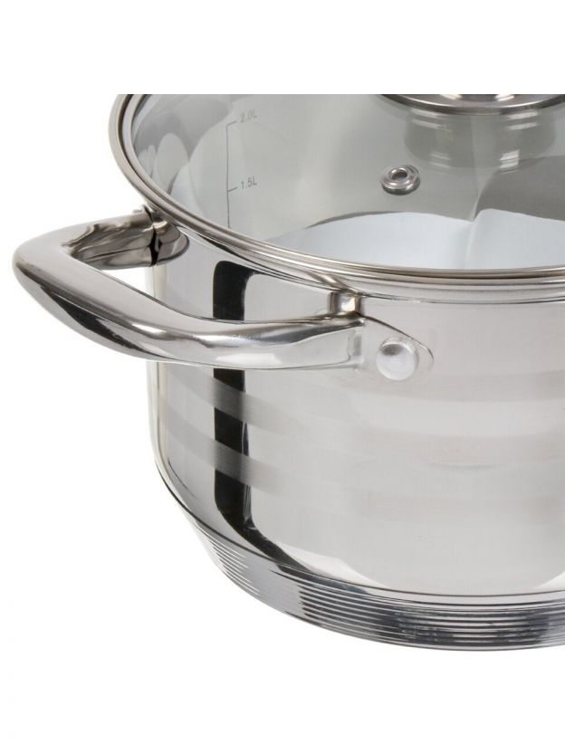 Кастрюля из нержавеющей стали 2.5 л Катунь Элис с капсульным дном: универсальное решение для индукции, газа и электрических плит. Готовьте супы, каши и пасту без хлопот!