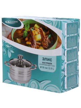 Кастрюля нержавеющая сталь, 2.5 л, крышка стекло, Катунь, Элис, КТ16-D-18, индукция