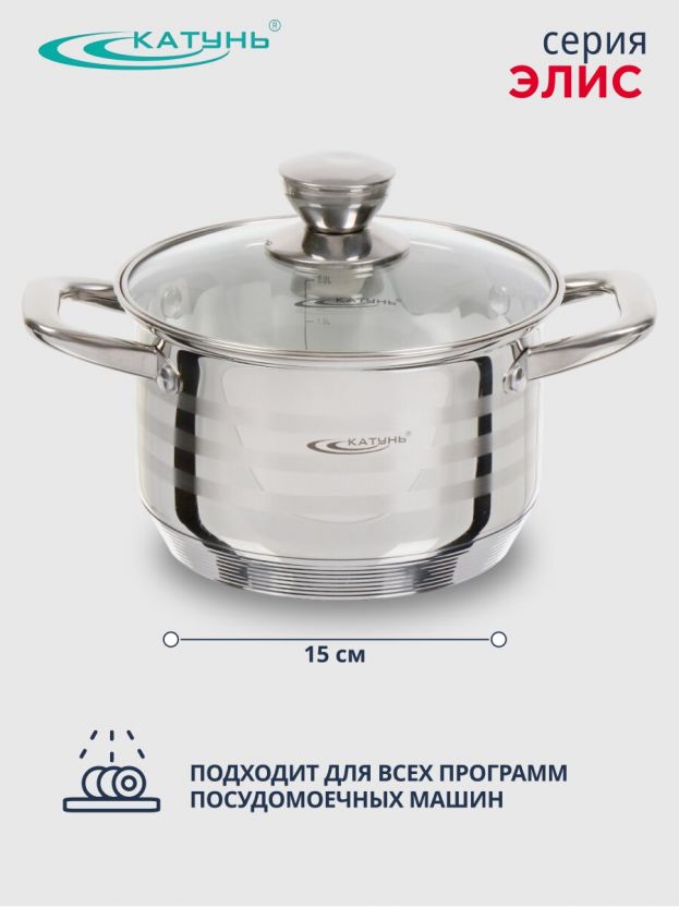 Чем отличается эта модель от аналогов? В отличие от кастрюль с тонким дном, Катунь Элис не деформируется при нагреве, подходит для всех плит, включая индукцию, и оснащена мерной шкалой внутри. Если вы спрашиваете, можно ли мыть кастрюлю в посудомоечной машине — да, уход за ней максимально прост. Для каких блюд подходит кастрюля из нержавеющей стали? Макароны, супы, пюре, каши и даже пельмени — всё готовится быстро и равномерно.