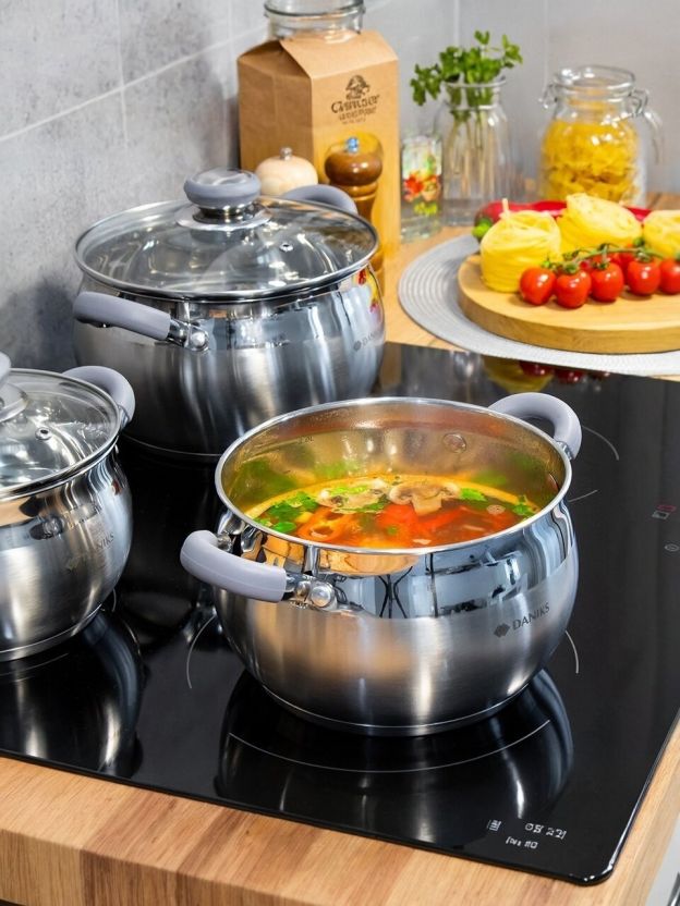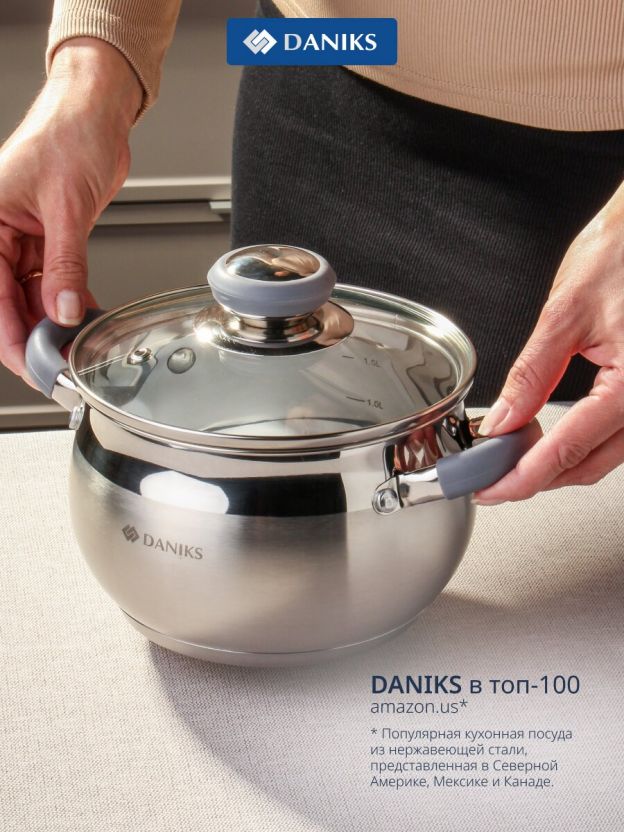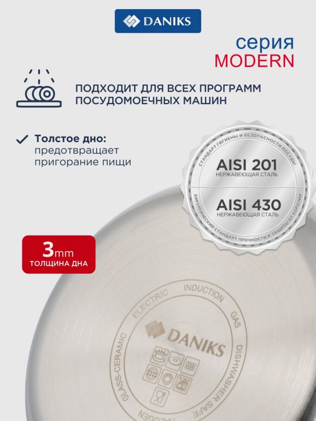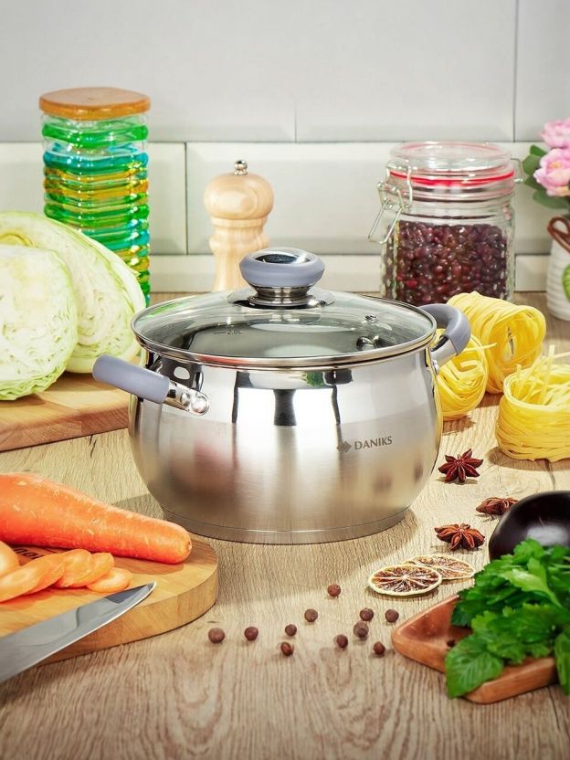 Часто спрашивают: «Как выбрать кастрюлю для индукционной плиты?» — ответ прост: обратите внимание на маркировку «индукция», материал (AISI 201), наличие капсульного дна и совместимость с посудомоечной машиной. Данную модель легко мыть вручную и в машине, она не впитывает запахи и устойчива к коррозии. В отличие от эмалированных и алюминиевых аналогов, нержавеющая сталь Daniks служит дольше, не требует специального ухода и не боится перепадов температуры.