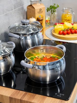 - Капсульное дно 3 мм: равномерный нагрев и экономия времени на всех типах плит, включая индукцию