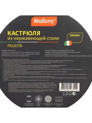 Универсальная кастрюля из нержавеющей стали 2.9 л Mallony Felicit_ — идеальный выбор для индукционных плит, быстрая готовка без пригорания и надежность на годы.
