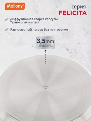 Закажите кастрюлю Mallony Felicit_ — получите практичное решение для кухни с гарантией производителя и выгодной ценой. Успейте купить недорого кастрюлю для дачи или дома с быстрой доставкой.