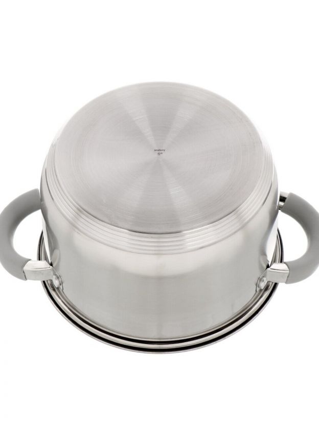 Кастрюля из нержавеющей стали Mallony Felicit_ на 2 литра — выбор для тех, кто ищет, какую кастрюлю выбрать для индукционной плиты или универсального использования на газе, стеклокерамике, электричестве. Благодаря капсульному дну (3,5 мм) тепло распределяется равномерно, что предотвращает пригорание и облегчает приготовление супов, каш, макарон и пюре. Стеклянная крышка с выпускным клапаном позволяет контролировать процесс и сохранять вкус блюд.
