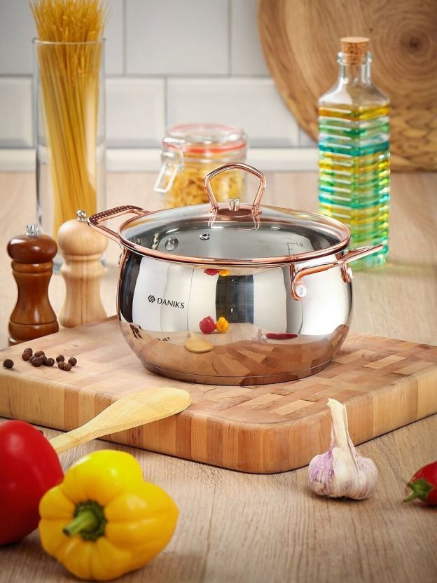 Многие спрашивают: «Как выбрать кастрюлю для индукционной плиты?» — этот вариант полностью совместим, а стеклянная крышка с выпускным клапаном предотвращает выкипание. В отличие от аналогов с эмалированием, здесь нет риска сколов, а стальные ручки выдерживают высокие температуры. Если ищете, какую кастрюлю купить недорого для дачи или дома, Daniks Карлин — оптимальное сочетание цены, долговечности и универсальности.