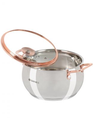 Кастрюля Daniks Карлин 3,4 л из нержавеющей стали c мерной шкалой и стеклянной крышкой: оптимальный выбор для индукции, дома и дачи — готовьте легко и надолго.