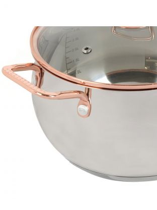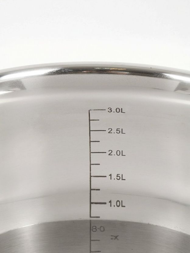Нержавеющая сталь устойчива к царапинам и сколам, не выделяет вредных веществ при нагревании, легко очищается вручную и подходит для любых блюд — от супа до пюре.