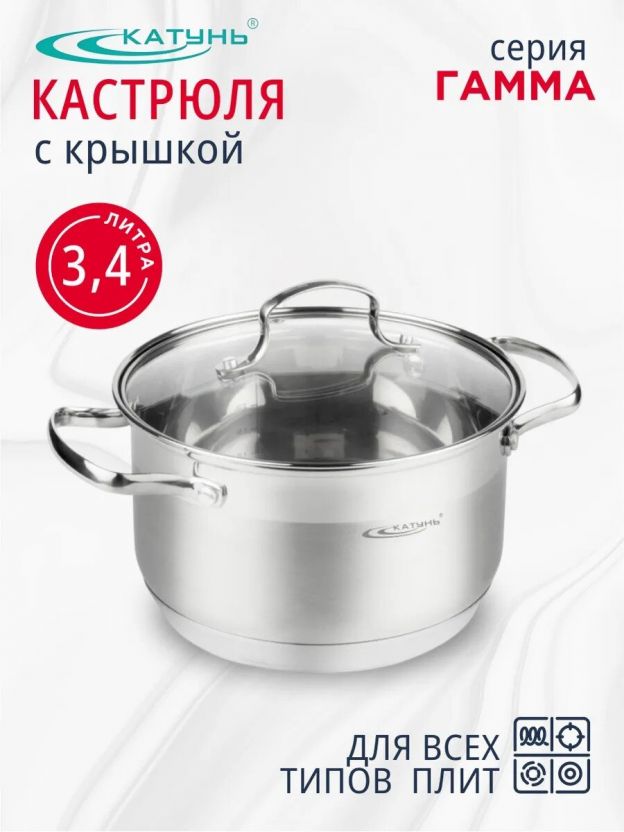 Кастрюля из нержавеющей стали 3.4 л Катунь Гамма: универсальное решение для индукции, посудомоечной машины и любых плит. Готовьте без хлопот!