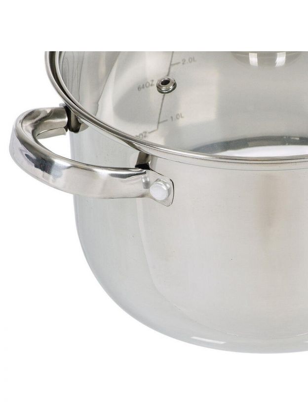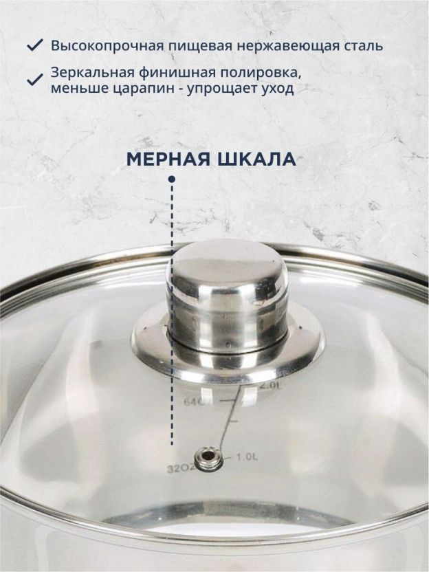 Кастрюля из нержавеющей стали 3.7 л с мерной шкалой и стеклянной крышкой: идеальный выбор для ежедневной готовки дома и на даче, долговечность по доступной цене.