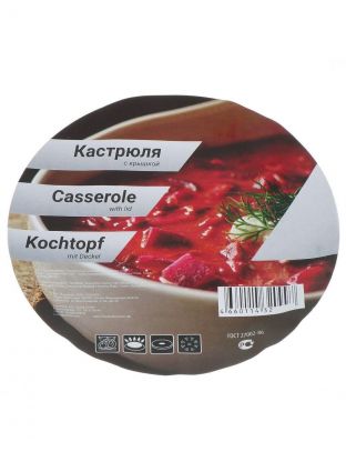 Диаметр кастрюли — 20 см, диаметр дна — 17 см, высота с крышкой — 14,5 см, без крышки — 12,5 см.