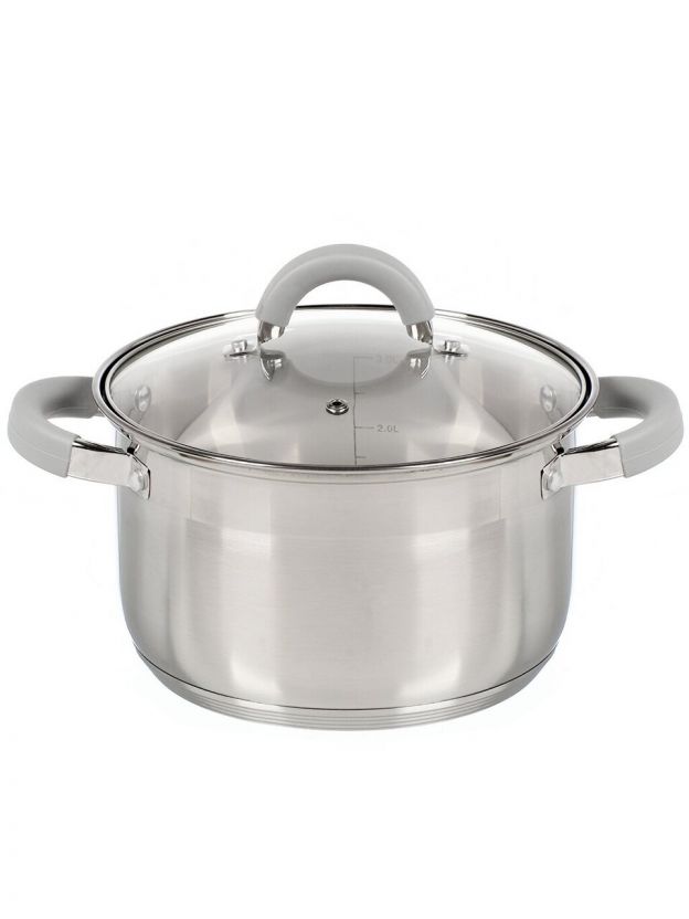 Кастрюля нержавеющая сталь, 3.9 л, крышка стекло, силиконовые ручки, Mallony, Felicit_, 009388, индукция