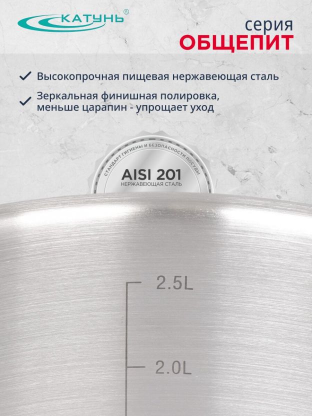 Кастрюля из нержавеющей стали 3 л Катунь Общепит — оптимальный выбор для кухни: долговечность, универсальность, идеальна для дома, дачи и подарка.