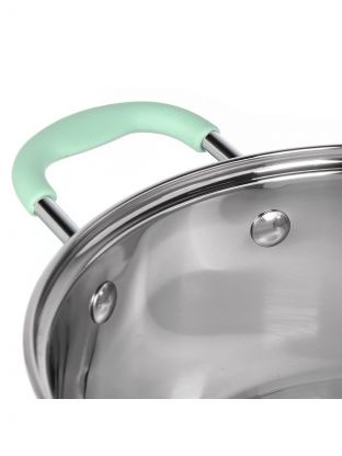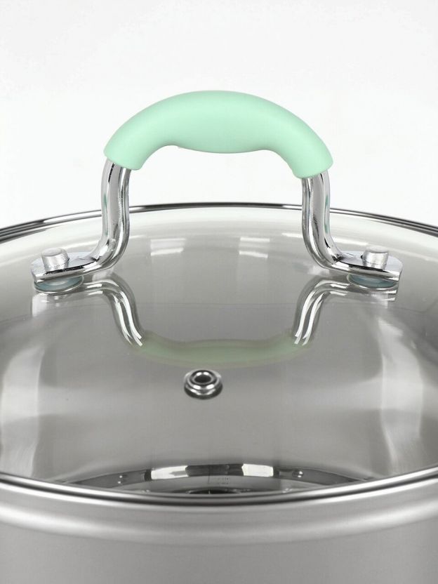 Кастрюля нержавеющая сталь, 4.5 л, крышка стекло, силиконовые ручки мятные, Daniks, Гринери, SD-23-22-2, индукция