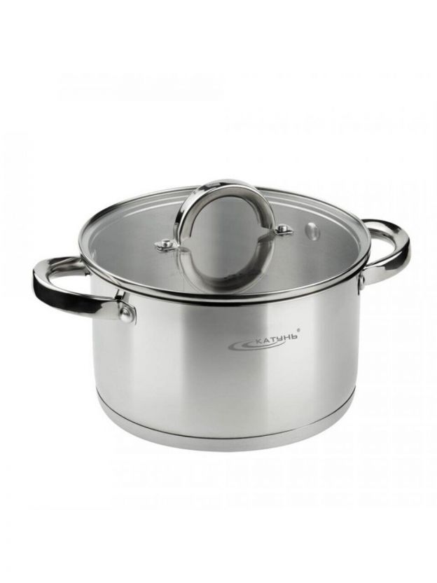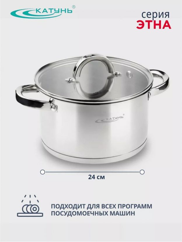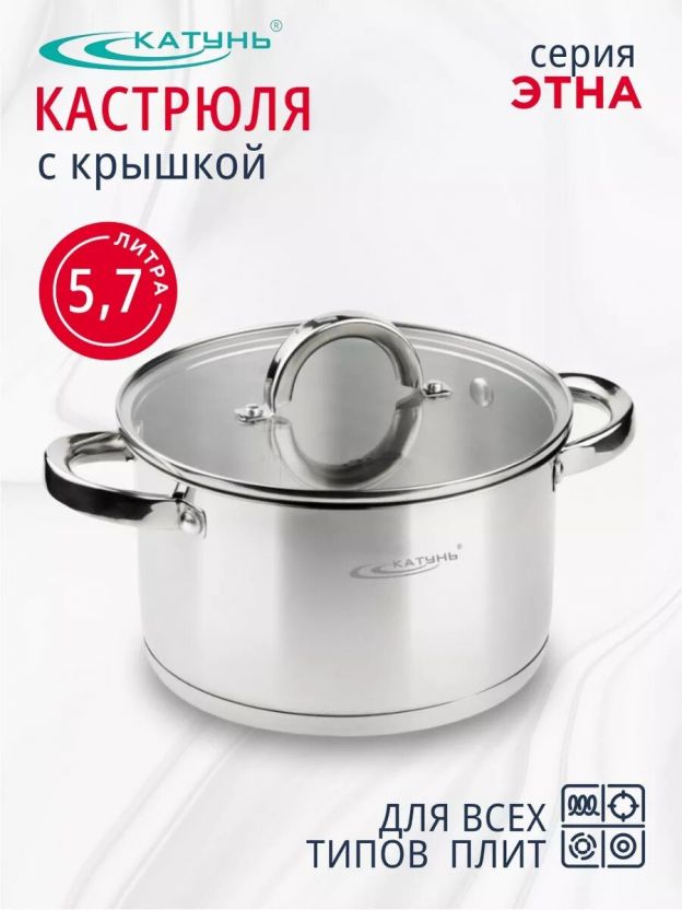 Кастрюля из нержавеющей стали 5.7 л Катунь Этна с капсульным дном и стеклянной крышкой — универсальное решение для дома и дачи, подходит для всех типов плит, включая индукцию.