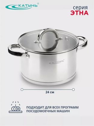 Кастрюля нержавеющая сталь, 5.7 л, крышка стекло, Катунь, Этна, КТ21-D-24, индукция