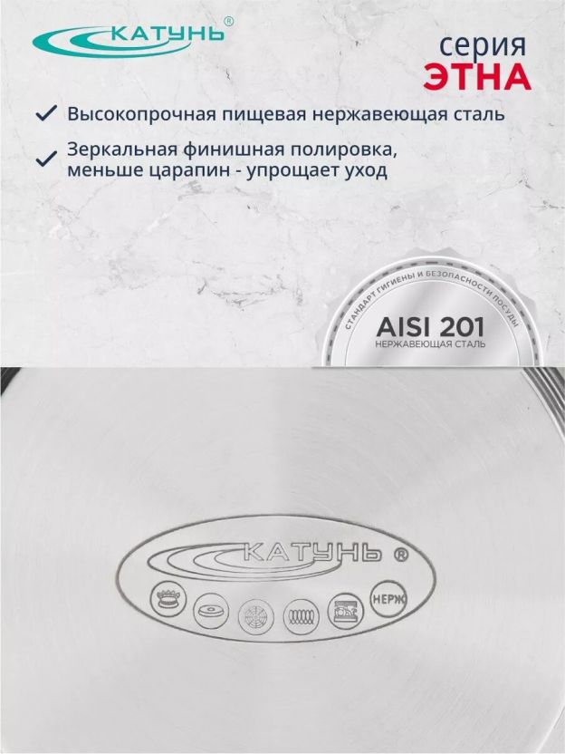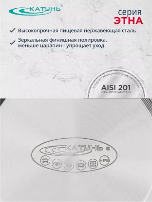 Заказывайте кастрюлю из нержавеющей стали Катунь Этна 5.7 л — выгодная цена, гарантия 12 месяцев, быстрая доставка по России. Оцените удобство и долговечность уже сегодня.