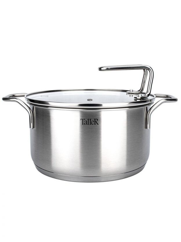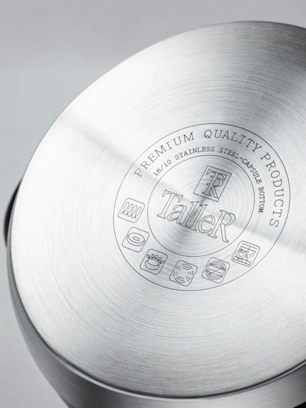 Кастрюля Taller Инесс 5 л из нержавеющей стали 18/10 с капсульным дном — оптимальный выбор для индукционных плит, быстрой готовки и стильной сервировки.