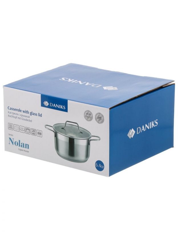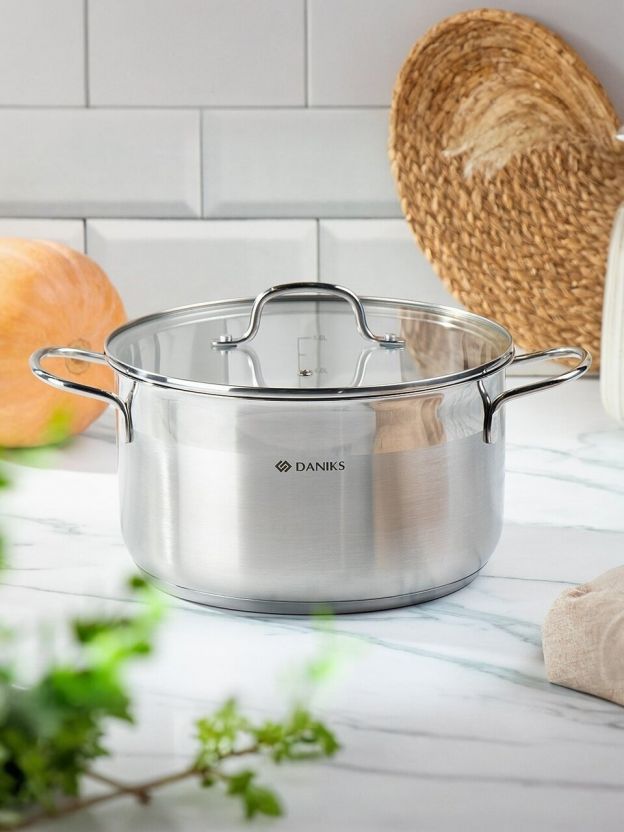 Кастрюля Daniks Нолан 6.1 л из нержавеющей стали: идеальный выбор для семьи и дачи — долговечность, универсальность, выгодная цена.