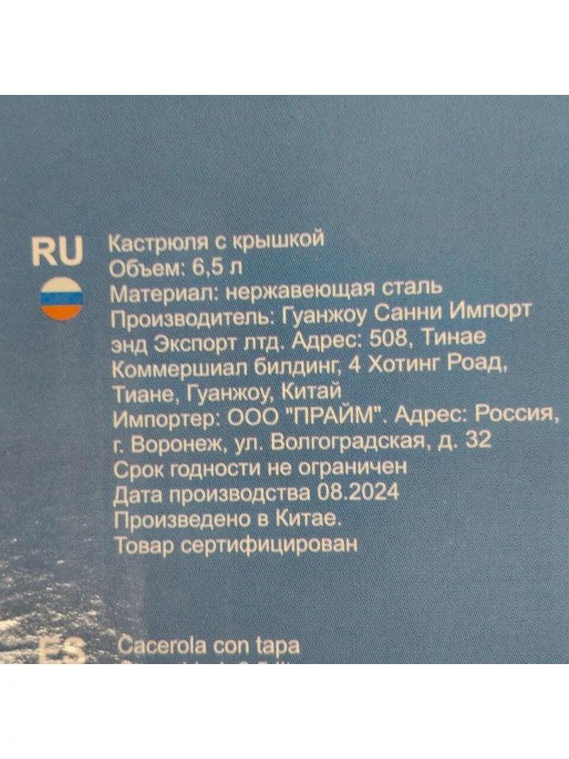 Объём кастрюли — 6,5 литра. Она идеально подходит для приготовления супов, макарон, каш, пюре и пельменей на большую семью или компанию.