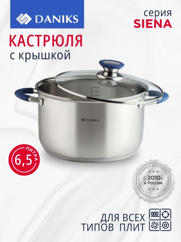 Кастрюля Daniks Сиена 6.5 л из нержавеющей стали: оптимальный выбор для индукционных плит — удобно готовить, легко мыть, подходит для больших семей.