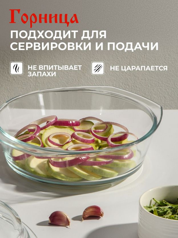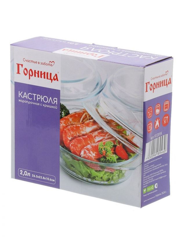 Кастрюля стекло, 22.8х26.5х10.6 см, 2 л, круглая, с крышкой, Горница, К1201К