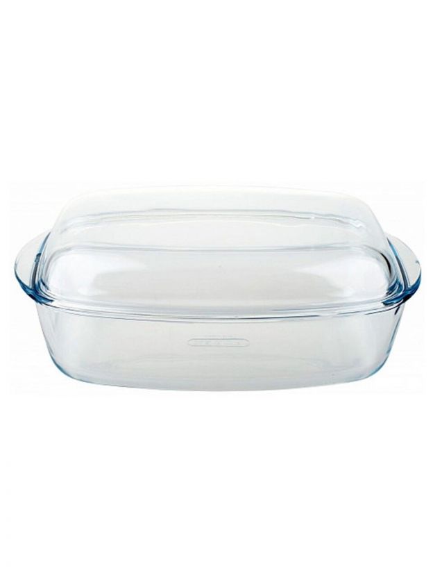 Прозрачная прямоугольная кастрюля Pyrex 6,5 л с крышкой — оптимальное решение для запекания, приготовления в духовке и СВЧ: удобно, безопасно, долговечно.