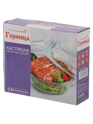 Кастрюля из жаропрочного стекла Горница 2.5 л: для духовки, СВЧ и посудомоечной машины. Прозрачный корпус, крышка в комплекте, идеальна для здорового питания.