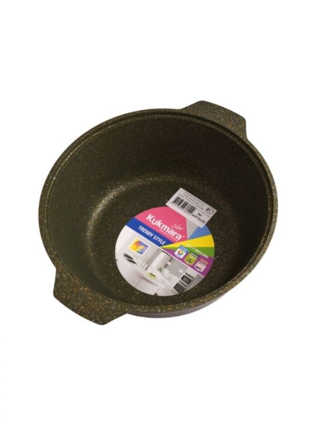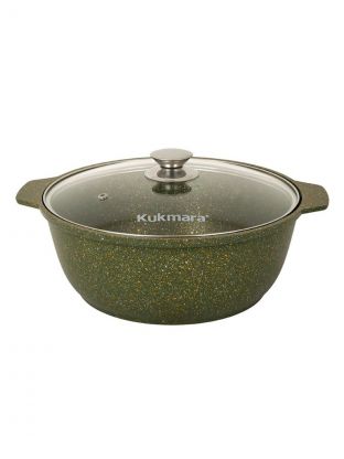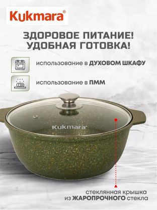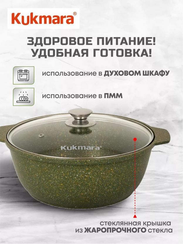 Кастрюля-жаровня Kukmara Trendy style 4 л (алюминий, антипригарное покрытие, крышка стекло): готовьте плов, макароны и рис без пригорания, легко мойте, выбирайте стильный малахит для кухни или дачи.