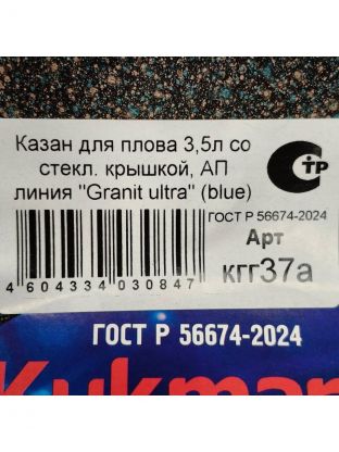 Казан алюминий, антипригарное покрытие, 3.5 л, Granit Ultra, с крышкой, синий, Kukmara, кгг37а