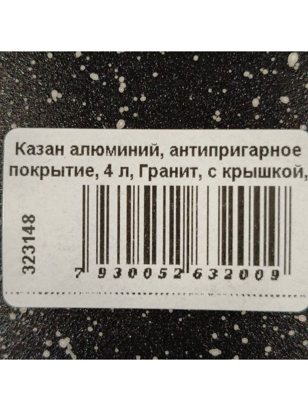 Казан алюминий, антипригарное покрытие, 4 л, Гранит, с крышкой, Горница, кн2832аг