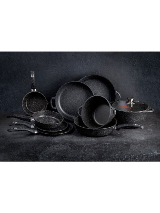 В производстве литой антипригарной посуды используется высококачественное сверхпрочное антипригарное покрытие, которое наносится методом напыления, что обеспечивает долговечность покрытия и высокую надежность нашей посуды. Применяемое покрытие не содержит в своем составе опасных для здоровья человека веществ PFOA и устойчиво к агрессивным средам и воздействиям температуры. При нагревании посуды также не выделяются вредные токсичные и канцерогенные вещества, использование такой посуды абсолютно безопасно.