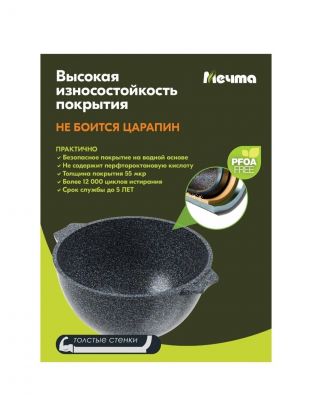 Казан алюминий, антипригарное покрытие, 8 л, Гранит star, с крышкой, Мечта, 58803