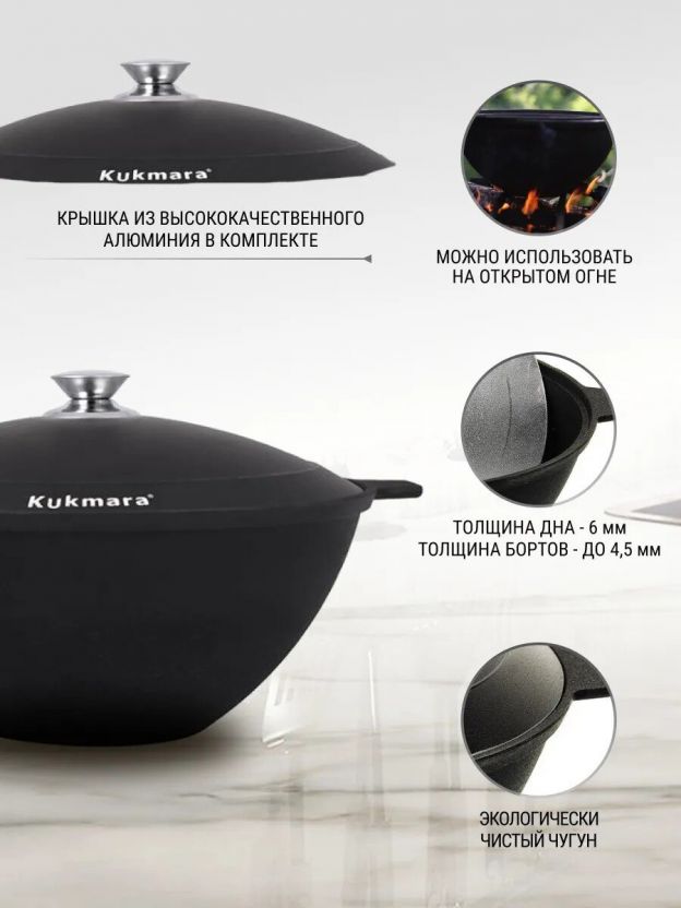 Вся линейка чугунной посуды выполнена из высококачественного экологически чистого чугуна, выдерживающего долгое и интенсивное использование. Чугунная посуда ТМ Kukmara обладает такими же превосходными качествами, что и чугунная утварь, которой столетиями пользовались наши «прабабушки»: