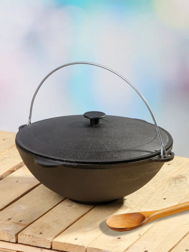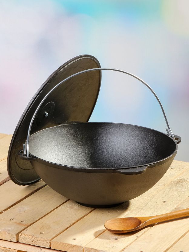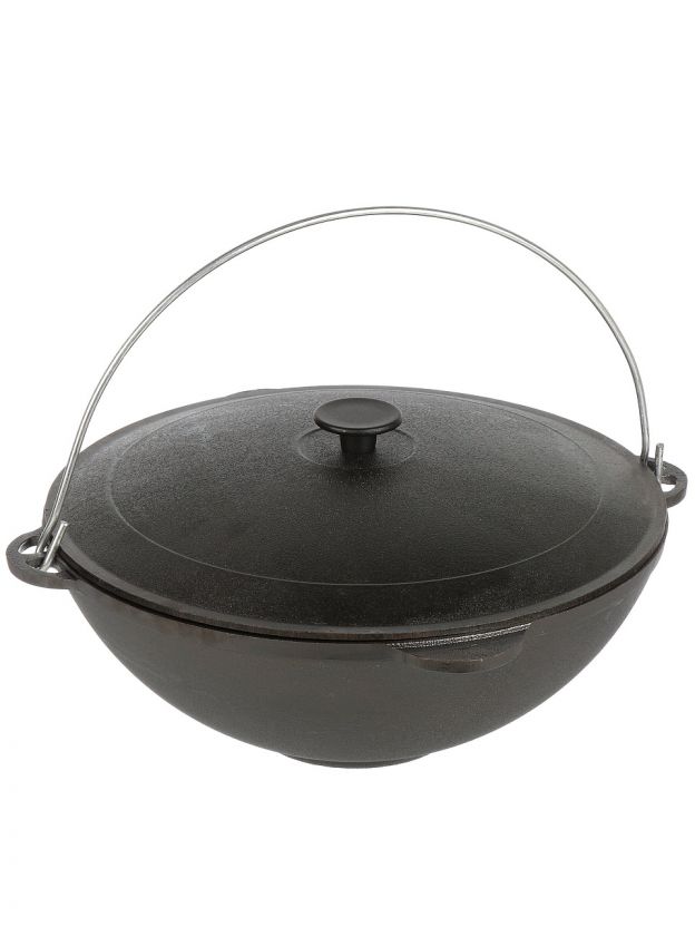 • Чугунный казан с дужкой — оптимален для приготовления блюд на костре и плите, сохраняет тепло и вкус продуктов.