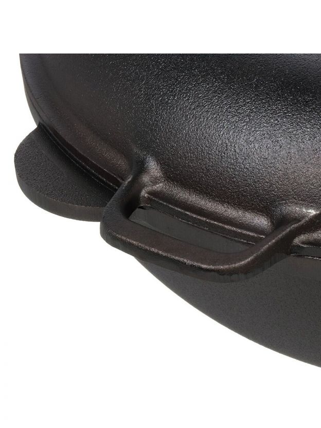 • Чугун обладает высокой теплоемкостью и равномерно распределяет тепло по всей поверхности казана, что обеспечивает идеальную прожарку и тушение продуктов.