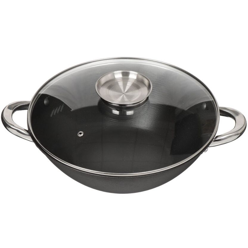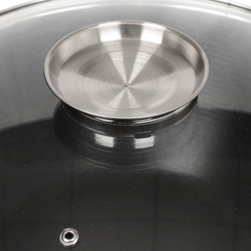 Казан объемом 4,4 л с антипригарным покрытием изнутри и краской черного цвета снаружи, с не нагревающимися ручками из нержавеющей стали.