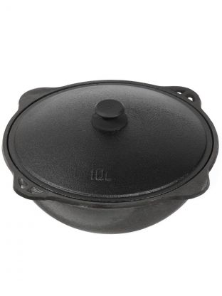 Казан узбекский чугун, 10 л, DavrMetall, с крышкой, крышка алюминий, плоское дно, Гурман