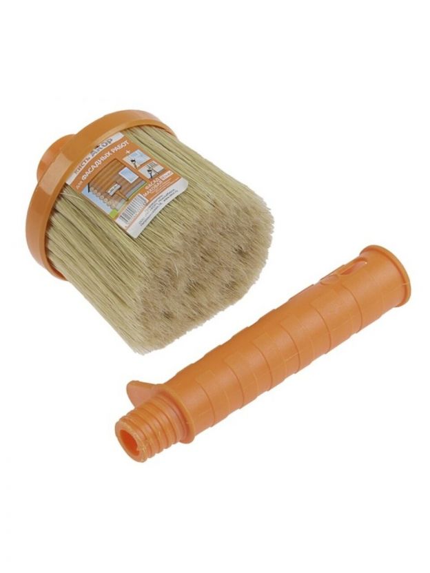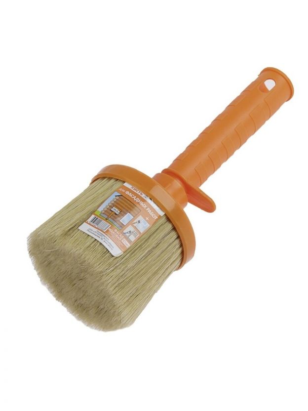 Фасадные работы – это, как правило, работы с большими площадями. Эти работы требуют более густой, плотной набивки по сравнению с прочими кистями. Данную кисть отличает высокая производительность и прочная фиксация щетины. Практикуется использование для работ с эмалями и