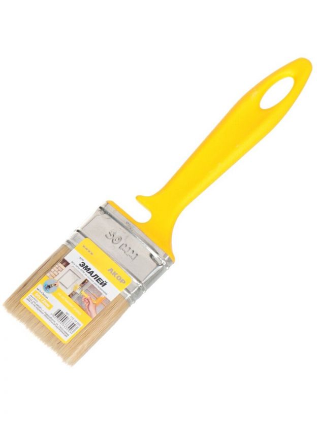 Кисть применяется для окрашивания эмалями, а также для фасадных работ и работ по дереву. Удобна для нанесения краски на узкие поверхности, такие как окна, подоконники и т.д. Щетина выполнена из натурального волокна. Рабочая часть надежно закреплена бандажом из стали. В пластиковой рукоятке имеется отверстие для подвешивания и специальный крючок для крепления на банку.