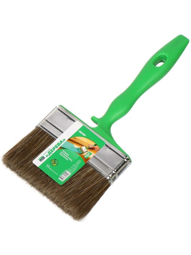 Плоская кисть Акор предназначена для ремонтных работ, используется для деревянных поверхностей. Щетина кисти позволяет легко и равномерно наносить материал. Рабочая часть надежно закреплена бандажом из стали. В рукоятке имеется отверстие для подвешивания и специальный крючок для крепления на банку.