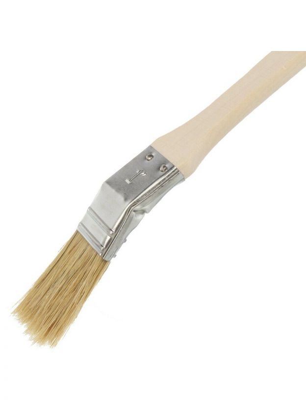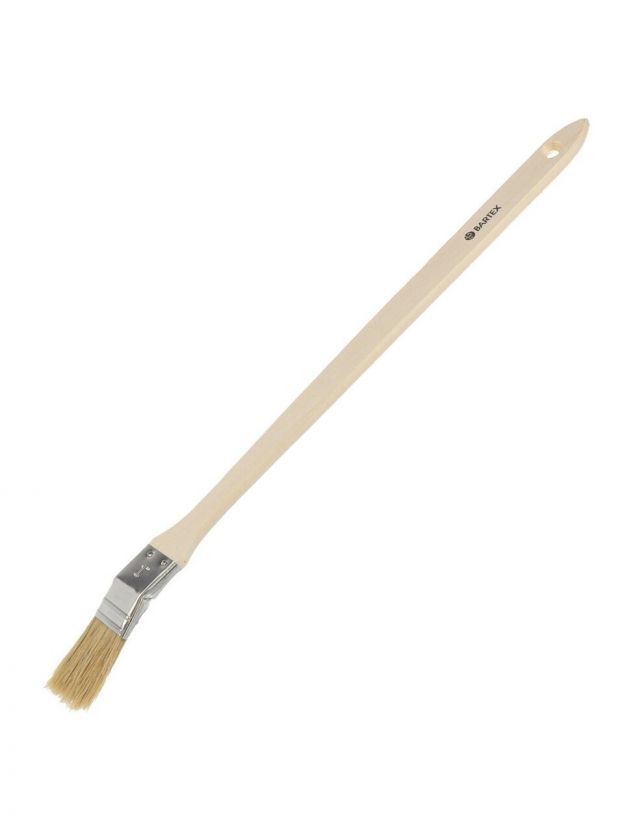 Радиаторные кисти имеют удлиненную ручку, а щетина расположена под некоторым углом к ней. Это позволяет качественно прокрашивать труднодоступные участки и проводить работы в стесненном пространстве.