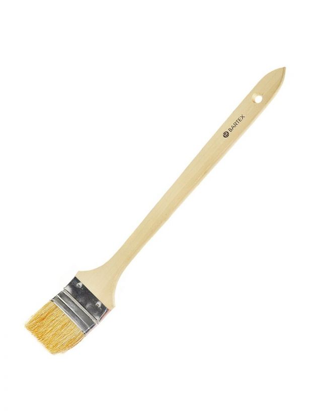 Радиаторные кисти имеют удлиненную ручку, а щетина расположена под некоторым углом к ней. Это позволяет качественно прокрашивать труднодоступные участки и проводить работы в стесненном пространстве.