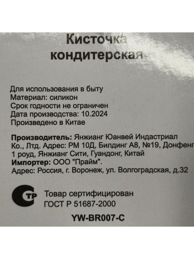 При приготовлении кондитерских изделий и других блюд не обойтись без использования кондитерской кисти. Это приспособление используется для нанесения крема, глазури, удобно для смазывания маслом противня или выпечки перед запеканием в духовке. Щетинки изготовлены из синтетического материала – гигиеничного, безопасного для использования с продуктами питания. Удобная пластмассовая ручка оснащена отверстием для крючка, кисть можно повесить или убрать в шкаф для комфортного хранения. После использования тщательно промывайте кисть с моющими средствами.